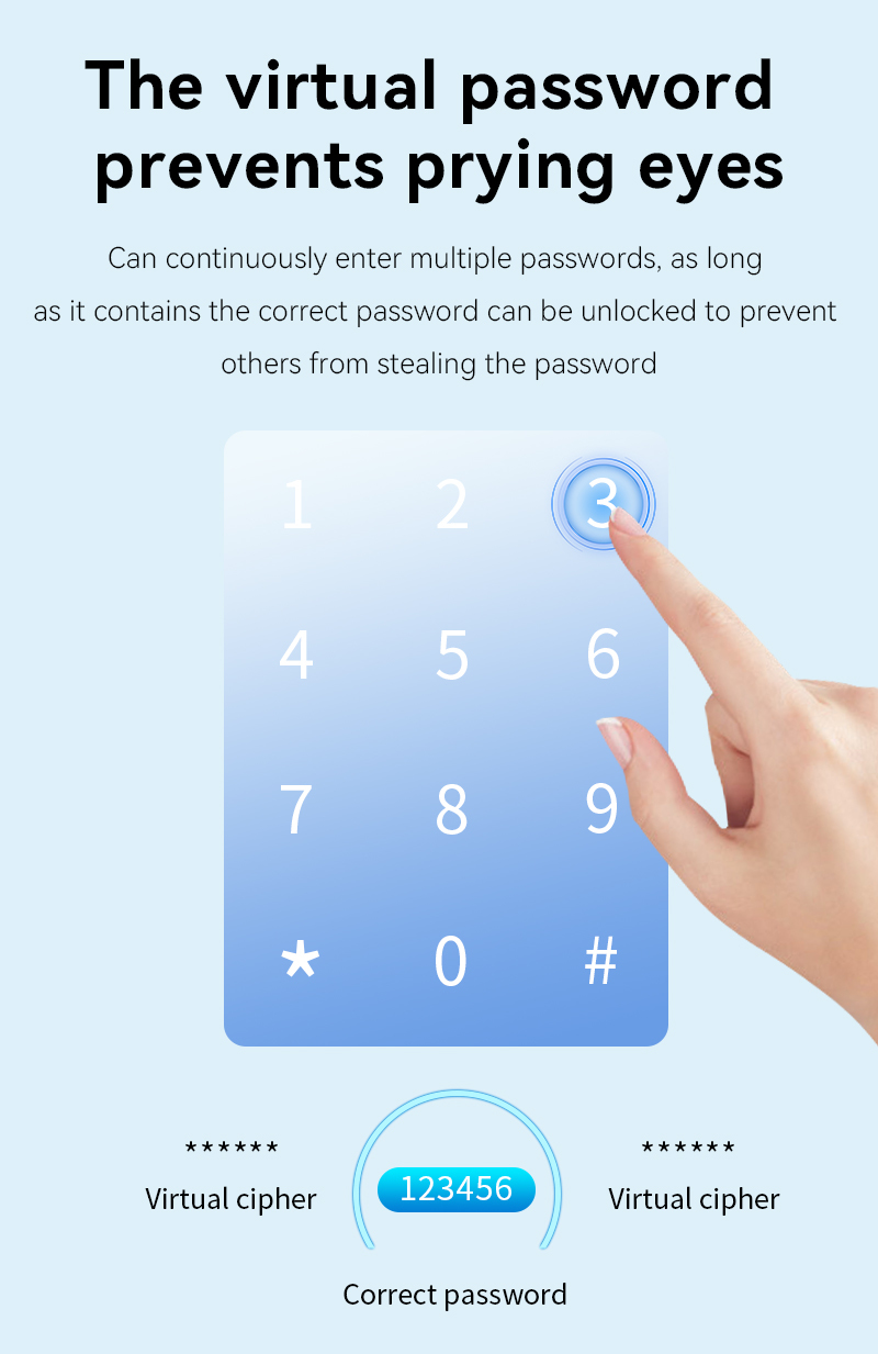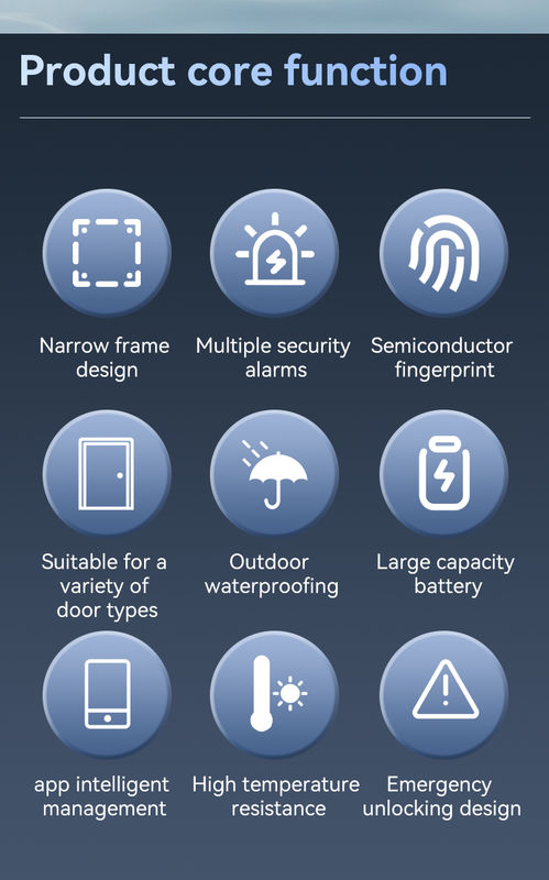 Ø एकाधिक अनलॉकिंग तरीके: फिंगरप्रिंट पहचान, पासवर्ड प्रविष्टि, कार्ड कुंजी एक्सेस, फोन ऐप नियंत्रण और बैकअप के लिए एक पारंपरिक कुंजी से लैस।