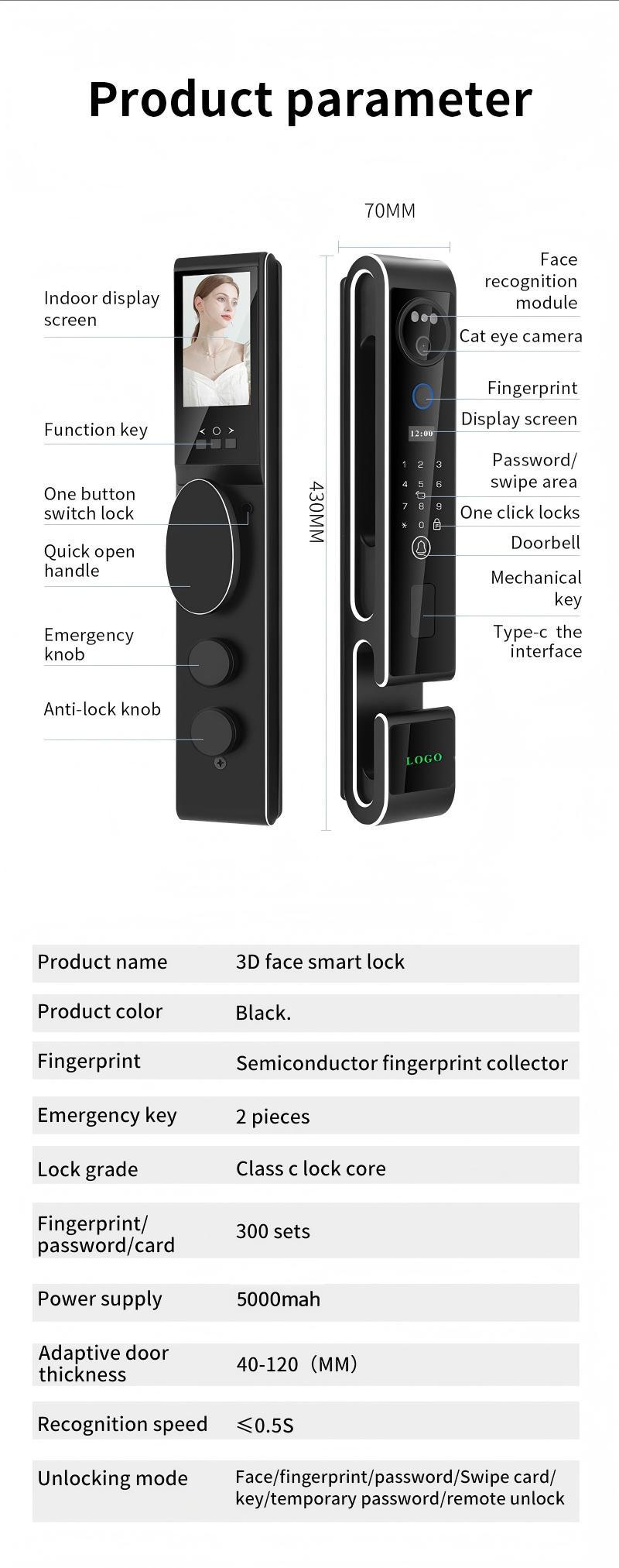3D पूरी तरह से स्वचालित Tuya डोर लॉक QL-S666 स्मार्ट होम डोर लॉक