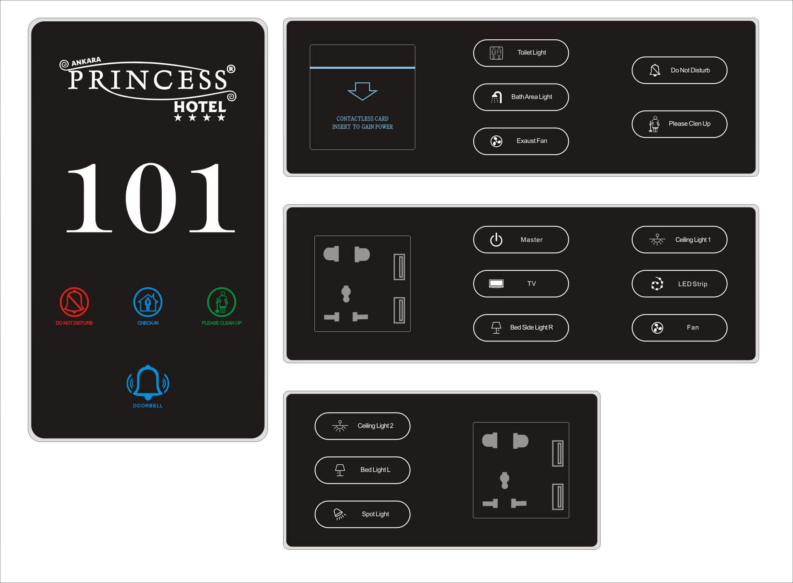 | कार्य | डीएनडी, चेक इन, प्लीज क्लीन अप आदि। |
