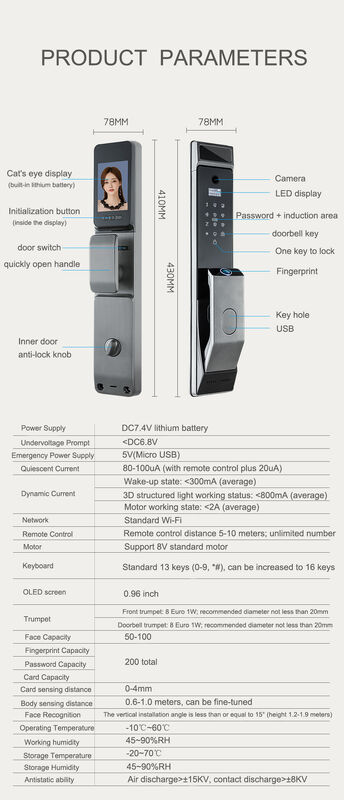 | प्रमुखता देना: | Tuya वाईफाई स्मार्ट डोर लॉक,फिंगरप्रिंट कोड स्मार्ट लॉक,पिकहोल कैमरा दरवाजा ताला |